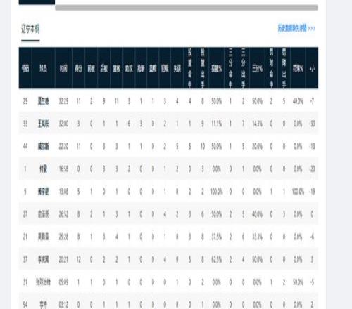 CBA常规赛第19轮,辽宁男篮客场59-78不敌新疆男篮。本场数据方面,辽篮和新疆队的篮板总数比为34-43,三分命中率比为29%-35%,罚篮命中率比为36.4%-64.7%。