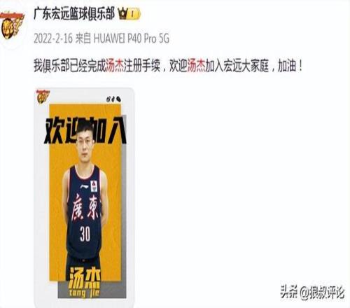 汤杰由于未能获得福建男篮续约合同,他打完全运会后,未能获得新的CBA球队签约,此时广东男篮给出橄榄枝,在第三阶段送出合同完成签约。