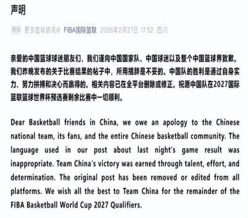 FIBA却用一场“选择性道歉”,暴露了傲慢。
