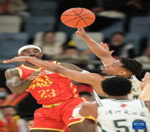 3月11日,南京天之蓝队球员汉兹(右前)在比赛中突破。新华社记者 江汉 摄