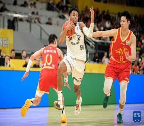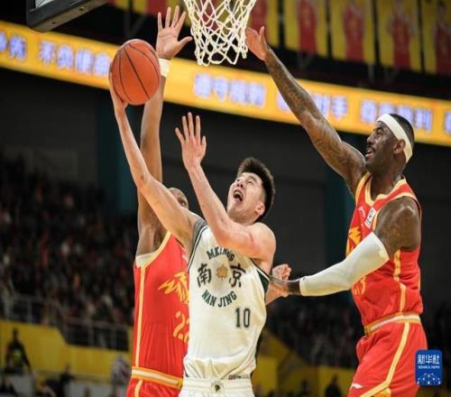 3月11日,南京天之蓝队球员汉兹(中)在比赛中突破。新华社记者 江汉 摄