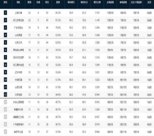 CBA排名:上海11连胜初露冠军相北京拒绝逆转四川创历史最长连败