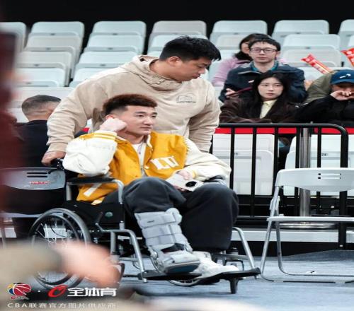 直播吧:郭昊文崴脚后穿上保护靴好在骨头无碍