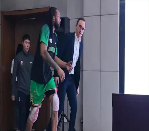 直播吧:郭昊文崴脚后穿上保护靴好在骨头无碍