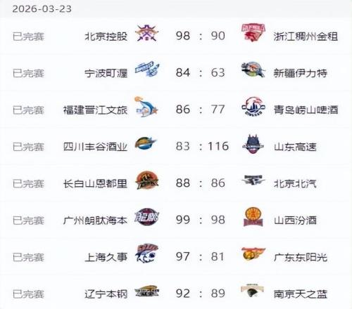CBA联赛第29轮的比赛已经结束,这轮比赛打得非常激烈,既有上海男篮三杀广东男篮的强强对话,也有北京男篮爆冷不敌吉林男篮的戏码,还有辽宁男篮18分大逆转战胜了同曦男篮。其他的比赛中,山西男篮对阵广州男篮、北控男篮对阵浙江男篮的比赛也是打到最后时刻才分出了胜负,最终是广州男篮和北控男篮获得了胜利。另外山东男篮大胜了四川男篮,宁波男篮大胜了新疆。来看一下这轮比赛的具体对阵情况和比赛结果。