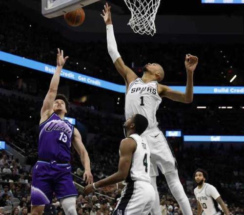 马刺7人上双123110爵士,文班亚马33+10,基昂特乔治30分