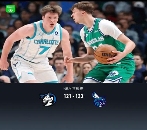 第四节独行侠弗拉格拿下9分,黄蜂布兰登-米勒拿下7分,最终独行侠121-123不敌黄蜂