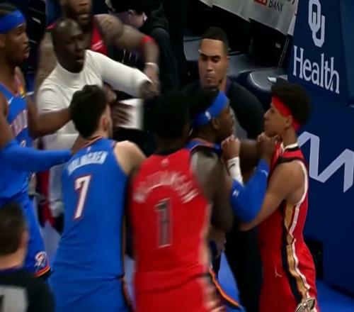 费尔斯不满又试图加剧冲突,多次冲锋去追打多尔特均是被阻挡,随后他被鹈鹕工作人员一路“保驾”返回更衣室。