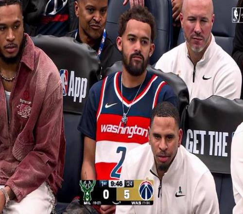而在奇才替补席上,特雷・杨的身影格外醒目:他特意穿上了沃尔效力奇才时的 2 号球衣,用最质朴的方式向前辈致意。
