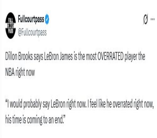 北京时间2月1日,太阳球员狄龙-布鲁克斯参加播客节目,被问到谁是现在NBA最被高估球员,狄龙沉思片刻,给出了答案:“勒布朗-詹姆斯。”