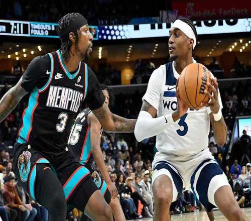 灰熊过去5场遭遇5连败,森林狼过去3场连赢勇士、独行侠与雷霆收获3连胜,本赛季首次交锋森林狼主场110-116输给灰熊。本场森林狼缺少香农,灰熊缺少贾伦、伊迪、莫兰特、克拉克等7位球员。首节开局森林狼2-7落后,爱德华兹引领一波9-1攻势反超3分,双方之后缠斗至森林狼18-16领先。森林狼内外开花一波12-3攻势扩大11分优势,科沃德上篮命中,首节结束森林狼30-21领先灰熊。首节森林狼22中11,其中三分9中5,爱德华兹9中4得到12分与兰德尔3记三分9分;灰熊22中8,其中三分12中1。