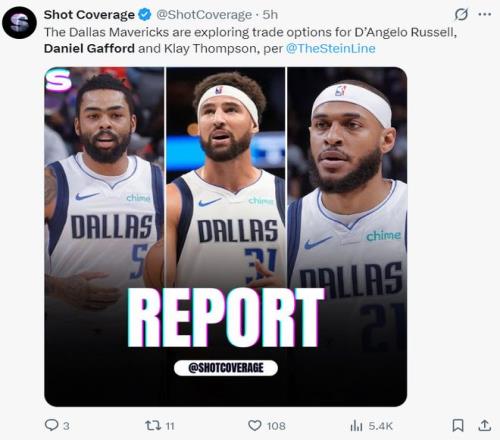 北京时间2月3日,根据《纽约邮报》记者马克-斯坦恩的报道,达拉斯独行侠正在积极的兜售丹吉洛-拉塞尔、克莱-汤普森、丹尼尔-加福德三位角色球员,他们不想送走马绍尔。