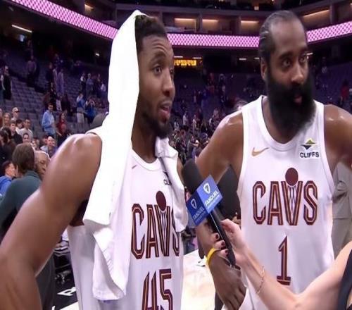 赛后米切尔也谈到了哈登加盟骑士,米切尔说他和哈登是老朋友了,他一直相信哈登。