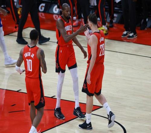 火箭队可以疯狂地抢到前场篮板,形成二次进攻的机会,申京可以在篮下轻松得分,而小史密斯可以拉到外线去投三分,亚当斯也可以接传球吃饼攻框。这就是火箭队之前上半赛季赢球的模式,也就是说,外线球员一旦投不中,那火箭队的内线球员就会去拼抢前场篮板。火箭队连续两个赛季前场篮板都是联盟最强,这就是火箭队主帅乌度卡的战术。看起来观感不佳,但是实际上非常好用,火箭队的进攻效率达到联盟第五,这种战术起到了至关重要的作用。