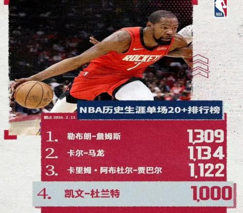 杜兰特拿到26分,还刷新了个人里程碑