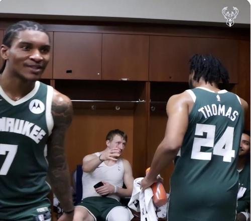 赛后雄鹿全队的工作人员、更衣室的球员们都主动与新援托马斯击掌致意,就连雄鹿核心扬尼斯-阿德托昆博都上前与托马斯拥抱,这是托马斯来到密尔沃基的第二场比赛,他第二场比赛就利用个人的进攻才能融入了球队。