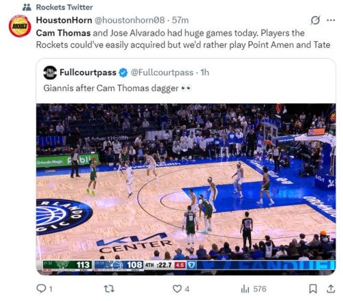 休媒赛后转发了托马斯超远三分的瞬间写道:原本我们有机会签下托马斯这样的得分手,但乌度卡更愿意使用阿门、泰特这样的防守者都不愿意签得分手。