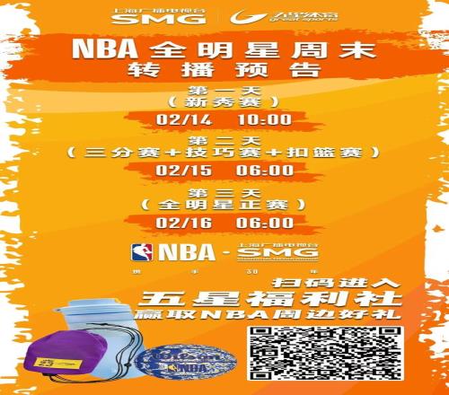 2026年NBA全明星周末即将在洛杉矶盛大举行,本届赛事迎来重大变革,正赛首次采用"美国队VS世界队"的三队循环赛模式,而倍受中国球迷关注的新秀挑战赛同样看点十足。五星体育频道将于2月14日至16日对本届全明星周末进行全程转播!特别聚焦中国球员杨瀚森在发展联盟队的表现,请与我们一同为瀚森加油!