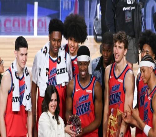 在2026年NBA全明星周末揭幕战——新秀挑战赛中,联盟年轻球员上演了一场紧张激烈的迷你锦标赛。最终,由文斯•卡特执教的卡特队在决赛中以25比24险胜卡梅罗•安东尼执教的安东尼队,成功夺冠,而费城76人新秀维杰•埃奇库姆凭借关键表现荣膺赛事最有价值球员。