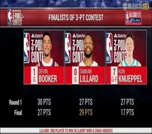 这也是利拉德参加三分大赛的第三个冠军