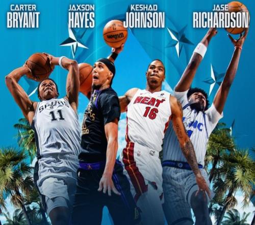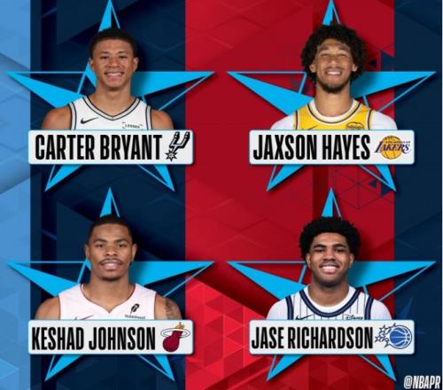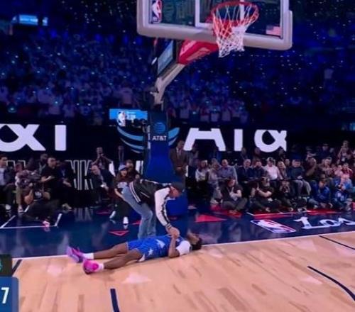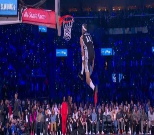 第二位登场的是两届扣篮王杰森-理查德森的儿子、魔术球员杰斯-理查德森,他从三分线外抛球,冲到禁区接球反弹完成拉杆小风车背扣得到45.4分。