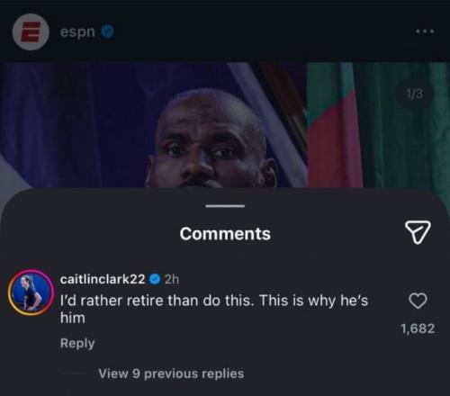 这个节目发出来后,说过詹姆斯是历史第一人的女篮超巨克拉克就现身评论区,表示戒掉爱好的话,她宁愿退役。克拉克这样写:我宁愿退役也不会戒掉爱好!这就是詹姆斯之所以是詹姆斯的原因。