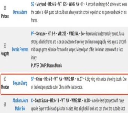 这也是张博源生涯首次被美国主流选秀网站预测关注,他们认为张博源身材高大,有出色的投篮手感,被认为是过去十年中国最出色的新秀球员!