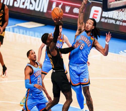 进入下半场,骑士发力:梅里尔连中两记三分+急停跳投,莫布里单打霍姆格伦+米切尔快攻抛投,骑士瞬间追平!此后哈登连续挡拆喂饼阿伦,不过雷霆依靠伊塞亚乔和华莱士屡屡给出回应,骑士失误确实有点多。后半段哈滕重扣,伊塞亚乔横移三分球,雷霆再度拉大分差,危急时刻米切尔大回环抛射,联合泰森再度追平,节末维金斯跳投+霍姆格伦罚球,三节打完时,骑士86-89落后。决战第四节,多特单打+霍姆格伦吃饼扣篮,雷霆再度起势。莫布里三分球很关键,但肯威和霍姆格伦回应5分。