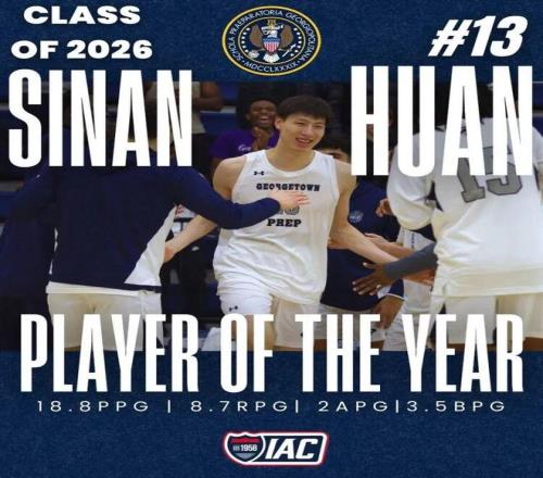 下赛季的NCAA赛场还有一位值得关注的超级新星,即已决定加盟普渡大学的郇斯楠,最近以场均18.8分8.7板3.5帽豪华数据当选了所在IAC(洲际体育联盟)的年度最佳球员, 所在球队Georgetown Prep Basketball发文向他表示祝贺。