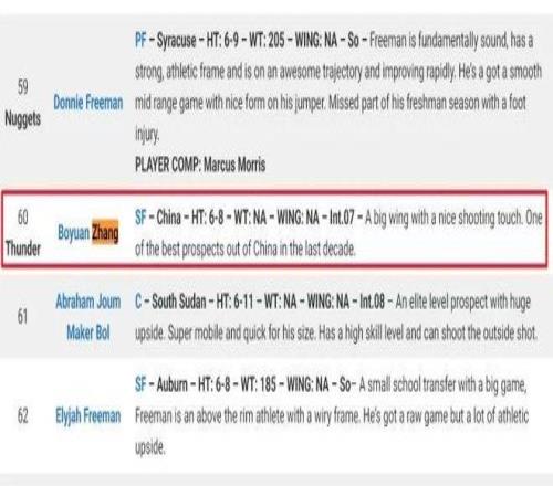 知名模拟选秀网站NBA Draft Room公布了最新2027年模拟选秀榜单,预测张博源次轮第60顺位被雷霆选中,这是后者首次进入主流模拟选秀网站的榜单。