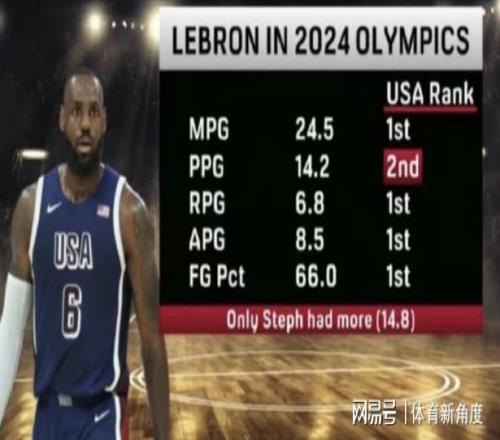 再把时光倒回前两年,2024年巴黎奥运会那可是热闹非凡。詹姆斯在奥运会上那简直就是“超级大魔王”般的存在,开幕式上,他昂首挺胸地举着美国队的旗帜,那仿佛整个世界都在他脚下。而且,他还荣获了美国队最佳运动员的称号,就像游戏里的MVP一样闪耀。在赛场上,他场均上场24.5分钟,妥妥的队内“劳模”第一名;场均能砍下14.2分,是队里的得分“二把手”;场均抓下6.8个篮板,篮板王非他莫属;场均送出8.5次助攻,传球大师的名号可不是白叫的;投篮命中率高达66%,这命中率,就像开了挂一样准。