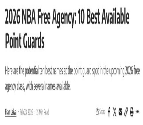 在常规赛进入后半段冲刺之际,美媒《FW》提前评选出26年休赛期自由市场10大控卫名单,其中火箭队范乔丹屈居第5,哈登意外落选。