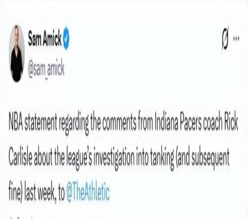 随后,NBA发言人向The Athletic记者阿米克发表声明,反驳卡莱尔对步行者调查过程的描述。