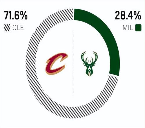 赛前,美媒ESPN对本场比赛进行了预测,雄鹿胜率仅有可怜的28.4%,骑士胜率高达71.6% ,断崖式领先。