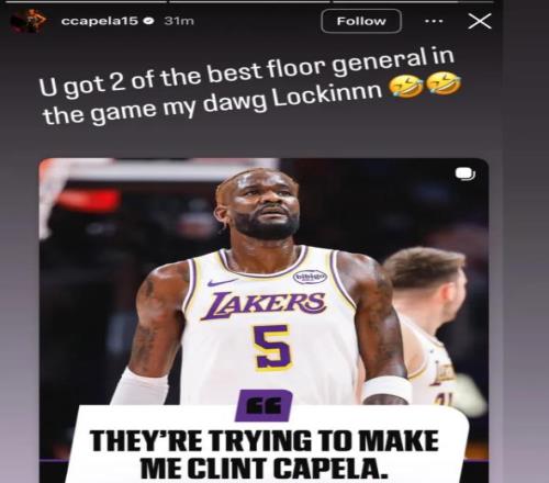 卡佩拉这次可以说是躺着也中枪,他个人也在社媒回应艾顿:你身边有两个最好的球场指挥官,我的兄弟!