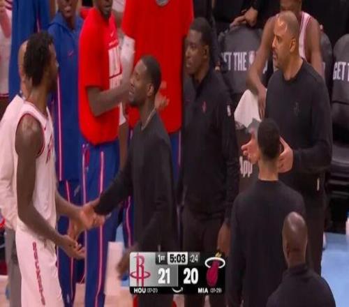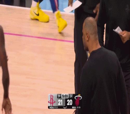 第一节,热火内线韦尔3分球外接球,方圆百里没有任何一个火箭防守球员,只好勉为其难投进了超大空位追身三分,气得乌度卡当场喊停。