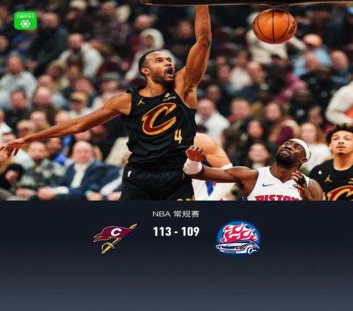 第四节骑士杰伦-泰森拿下7分,活塞杰伦-杜伦拿下9分,最终骑士113-109战胜活塞