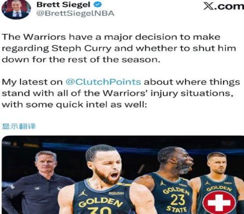 3月4日,根据美国记者Brett Siegel消息勇士计划让库里缺席本赛季剩余常规赛,以帮助他彻底恢复伤病!