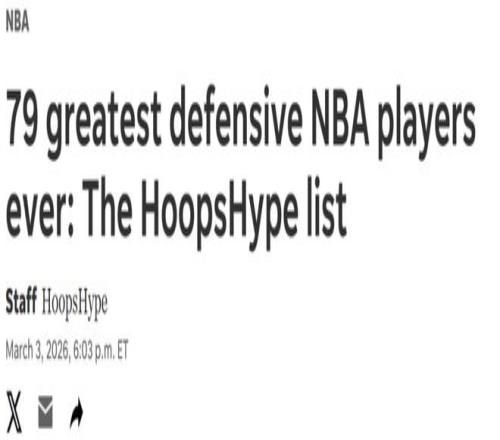 在又一个赛季进入冲刺阶段之际,美媒《hoopshype》根据最新表现评选出NBA史上TOP79防守者,其中詹姆斯32乔丹15追梦14魔兽10,中锋包揽榜单前二。