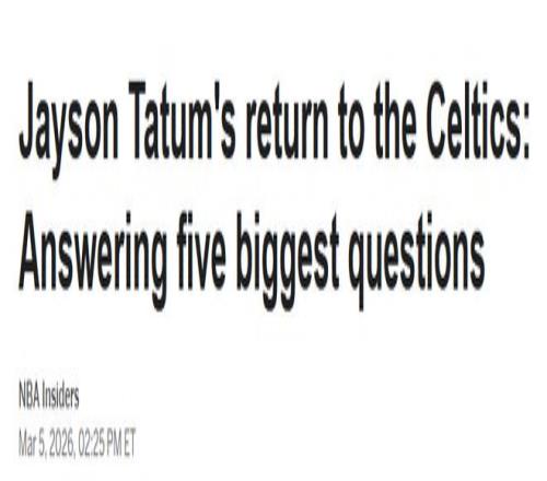 塔图姆为何选择现在复出?他的回归将如何影响总冠军争夺?又会如何改变凯尔特人今年夏天的休赛期规划?ESPN解答了关于这位2024年NBA总冠军成员惊人复出的五大核心悬念。