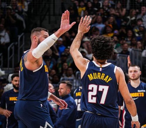 开场掘金的进攻主导权是在贾马尔-穆雷这边,很明显约基奇也乐见其成,首节穆雷5分钟里三分2中2拿到9分2助攻,约基奇首节4中3拿到6分5篮板4助攻,约基奇这个数据就是冲着三双去了。
