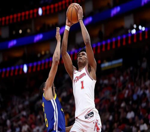 本场比赛中,看起来火箭的先发控卫阿门-汤普森(Amen Thompson)打出了不错的数据,实际上他的表现是非常一般的。阿门全场出场43分30秒,投篮15中8,三分线外2中1,罚球2中1,得到了18分10篮板5助攻4抢断的两双数据,其中还包括了7个前场篮板,还有1次失误和1次犯规,正负值为+6。阿门在前后场篮板争抢以及防守方面的表现都是值得肯定的,他抢到了大量的前后场篮板,他也有着很高的防守侵略性,他也利用转换进攻拿到了不少分数。然而另一方面,阿门作为一名控卫,没有基本的传球和组织能力,而且他的技术非常粗糙,并不能在进攻端完成稍微复杂一些的得分,他在进攻端的功能其实是非常单一的,完完全全就是一个辅助型球员的样子,他在进攻端对于球队空间的负面影响也是肉眼可见的。