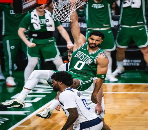 塔图姆太久没有打高对抗的比赛,开场明显诸多不适,扣篮不进,中投连连打铁,首节2中0拿0分2篮板2助攻,次节6中2+三分3中1拿到5分3篮板3助攻,第二节两次暴扣有一个没有扣进。