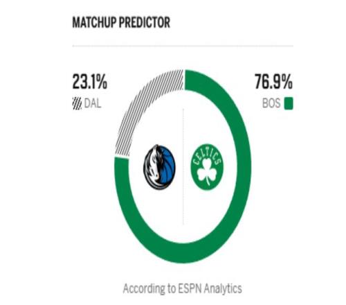 北京时间3月7日,NBA常规赛迎来凯尔特人和独行侠的比赛!独行侠上场1分遗憾输给魔术,21胜41负的战绩位列西部第12,上场比赛,弗拉格和克莱均有亮眼的表现,克莱命中7个3分拿到24分,弗拉格虽然22中7,但关键时刻打进2+1在防守端也贡献突出,一度差点带队赢球。凯尔特人这边上场29分惨败黄蜂,不过41胜21负的战绩仍位居东部第二,目前这个战绩令绿军高层相当满意,此外,今天当家球星塔图姆重伤查出,将首发出战,且没有时间限制!赛前,ESPN预测本场比赛的结果,绿军胜率76.9%,独行侠胜率低至23.1%。