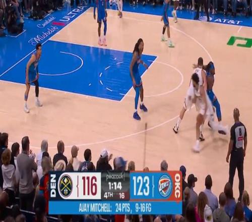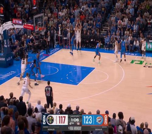 ——雷霆最后一攻,亚历山大接球单挑琼斯,投进绝杀三分,没有暂停的掘金后场孤注一掷的三分不进,雷霆拿下胜利