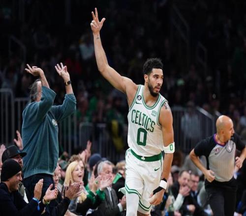 周日战胜骑士的比赛中,塔图姆开局单节狂砍12分。他投三分、冲击篮下、为自己创造机会——全是标志性的塔图姆操作。