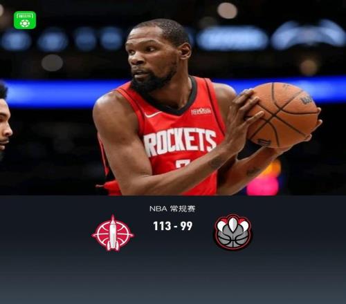 第四节火箭小贾巴里-史密斯拿下8分,猛龙RJ-巴雷特拿下6分,最终火箭113-99战胜猛龙