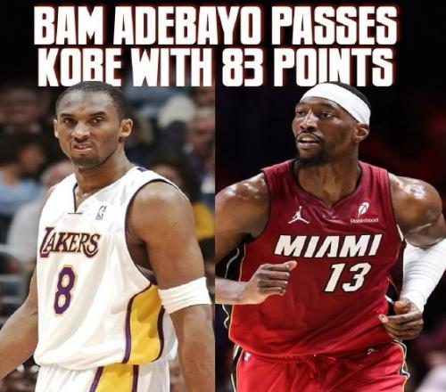 83分刷新了阿德巴约的个人生涯得分纪录,同时也超越了科比的81分,成为NBA历史第二高得分,仅次于张伯伦的单场100分。