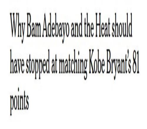 The Athletic名记Amick表示,出于对科比的尊重,热火应该在阿德巴约超过科比前换下他。 Amick写道:“出于人性使然,他(科比)的离世让每一个他最珍贵的成就都变得更加厚重,也让人们觉得应当以某种特别的方式来对待这些成就。阿德巴约砍下高分后,我与一些科比的前同事联系过后得到的反馈,有这种想法的人不止我一个。当然,他无需为此道歉。恰恰相反,完成如此不可思议的壮举理应赢得四面八方的赞誉;毕竟83分就是83分。要是他能早些收手就好了。”