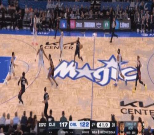 最后38秒,米切尔一个追身3分,骑士凭着5个3分球,将分差缩小到了2分。